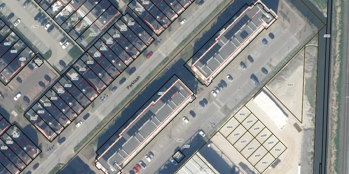 Parklaan 376 is gelegen op kadastraal perceel WDV01E4176. Deze kadastrale aanduiding is uniek en wordt gebruikt door het Kadaster om eigendomsrechten en andere zakelijke rechten vast te leggen. Het perceel maakt onderdeel uit van de kadastrale gemeente Waddinxveen.