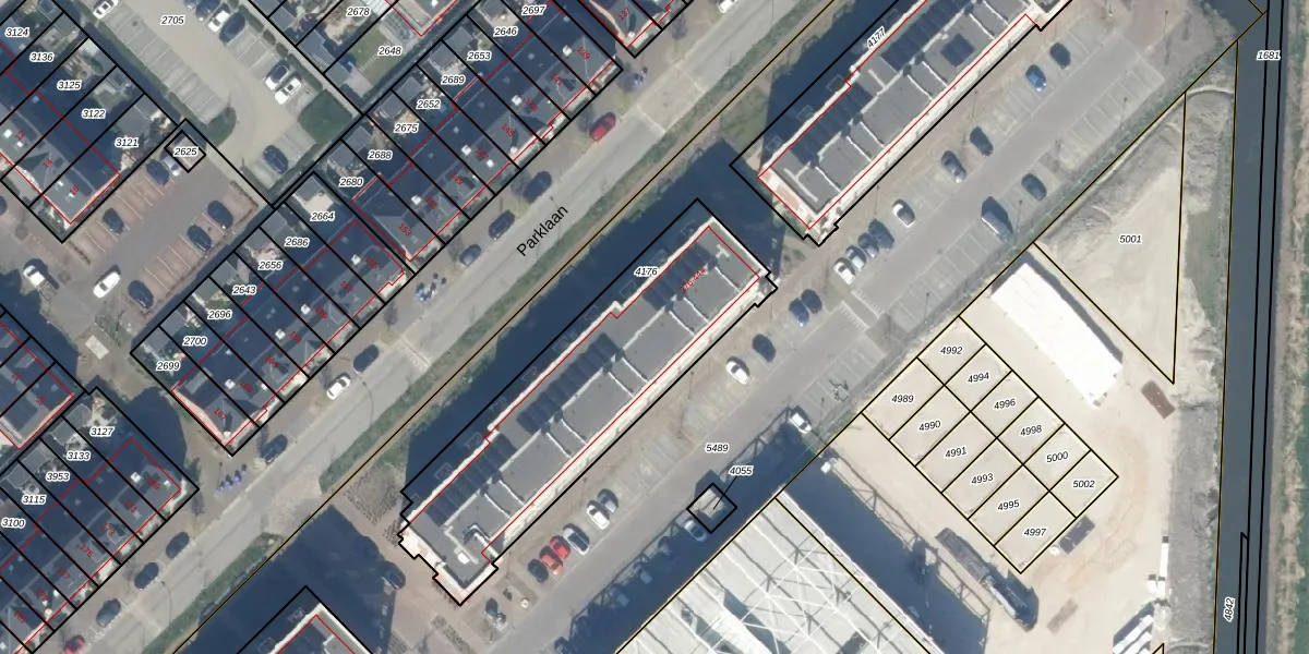 Parklaan 430 is gelegen op kadastraal perceel WDV01E4176. Deze kadastrale aanduiding is uniek en wordt gebruikt door het Kadaster om eigendomsrechten en andere zakelijke rechten vast te leggen. Het perceel maakt onderdeel uit van de kadastrale gemeente Waddinxveen.