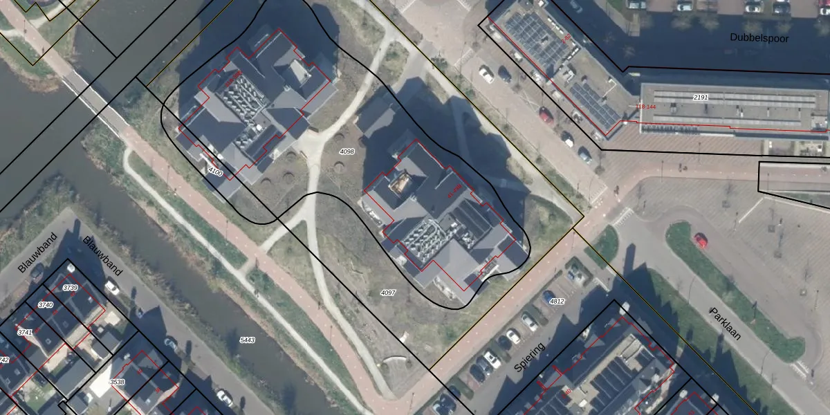 Het perceel waarop Parklaan 49-A staat heeft een oppervlakte van 2897 m². Dit is een zeer groot perceel. De perceeloppervlakte wordt geregistreerd door het Kadaster. Gedetailleerde informatie over de maten van dit perceel kunt u vinden in het rapport Kadastrale kaart met maatvoering van Parklaan 49-A.