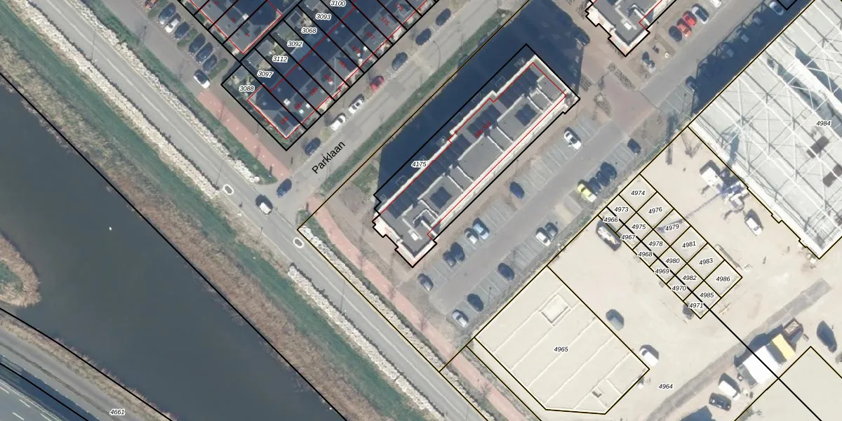 Parklaan 512 is gelegen op kadastraal perceel WDV01E4175. Deze kadastrale aanduiding is uniek en wordt gebruikt door het Kadaster om eigendomsrechten en andere zakelijke rechten vast te leggen. Het perceel maakt onderdeel uit van de kadastrale gemeente Waddinxveen.