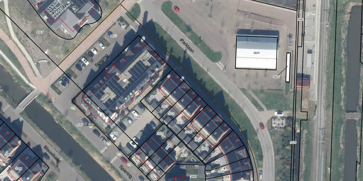 Parklaan 53 is gelegen op kadastraal perceel WDV01E2511. Deze kadastrale aanduiding is uniek en wordt gebruikt door het Kadaster om eigendomsrechten en andere zakelijke rechten vast te leggen. Het perceel maakt onderdeel uit van de kadastrale gemeente Waddinxveen.