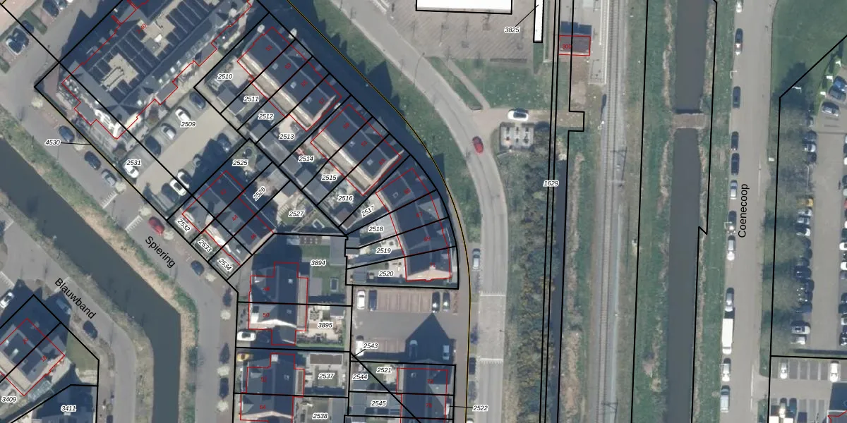Het adres ligt op het perceel WDV01-E-2518, dat zich in de kadastrale gemeente Waddinxveen bevindt. Het perceel is kleiner dan gemiddeld in Waddinxveen. Het perceel is 135 m² groot, terwijl het gemiddelde ligt op 2158,81 m². Het grootste perceel in de kadastrale gemeente is 49,8 ha. Het kleinste perceel heeft een oppervlakte van 0 m². Op het perceel bevinden zich geen andere adressen. In de Basisregistratie Kadaster (BRK) werden de grenzen van het perceel geregistreerd op 14-04-2022.