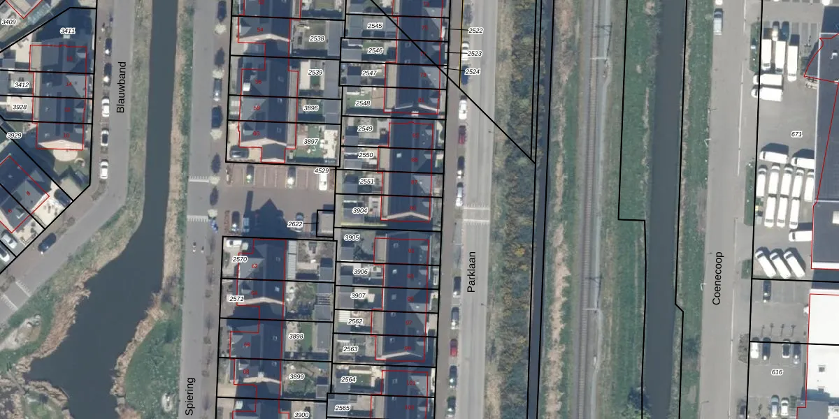 Gebruik de zoekbalk of klik op een perceel voor informatie over de adressen binnen dit perceel.