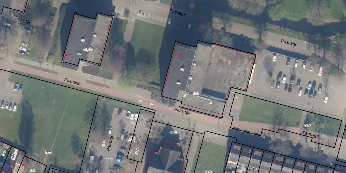 Het perceel waarop Passage 140 staat heeft een oppervlakte van 1621 m². Dit is een zeer groot perceel. De perceeloppervlakte wordt geregistreerd door het Kadaster. Gedetailleerde informatie over de maten van dit perceel kunt u vinden in het rapport Kadastrale kaart met maatvoering van Passage 140.