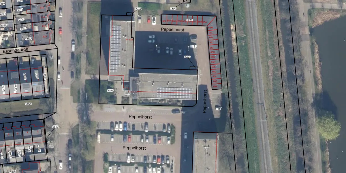 Peppelhorst 102 is gelegen op kadastraal perceel WDV01B5786. Deze kadastrale aanduiding is uniek en wordt gebruikt door het Kadaster om eigendomsrechten en andere zakelijke rechten vast te leggen. Het perceel maakt onderdeel uit van de kadastrale gemeente Waddinxveen.