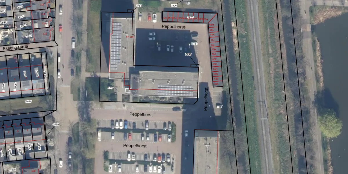 Peppelhorst 110 is gelegen op kadastraal perceel WDV01B5786. Deze kadastrale aanduiding is uniek en wordt gebruikt door het Kadaster om eigendomsrechten en andere zakelijke rechten vast te leggen. Het perceel maakt onderdeel uit van de kadastrale gemeente Waddinxveen.