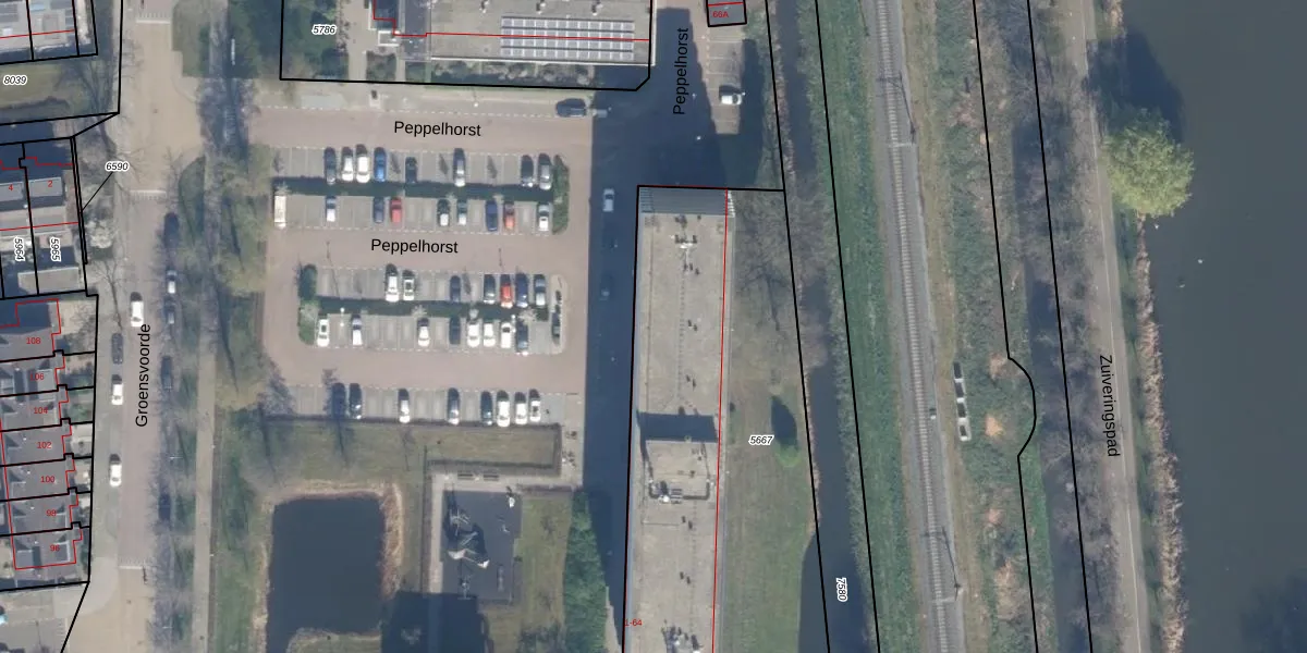 Het perceel waarop Peppelhorst 14 staat heeft een oppervlakte van 1965 m². Dit is een zeer groot perceel. De perceeloppervlakte wordt geregistreerd door het Kadaster. Gedetailleerde informatie over de maten van dit perceel kunt u vinden in het rapport Kadastrale kaart met maatvoering van Peppelhorst 14.