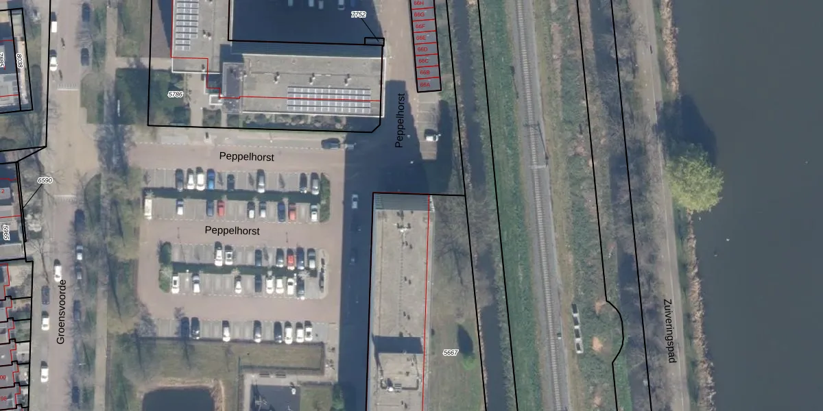 Het perceel waarop Peppelhorst 48 staat heeft een oppervlakte van 1965 m². Dit is een zeer groot perceel. De perceeloppervlakte wordt geregistreerd door het Kadaster. Gedetailleerde informatie over de maten van dit perceel kunt u vinden in het rapport Kadastrale kaart met maatvoering van Peppelhorst 48.