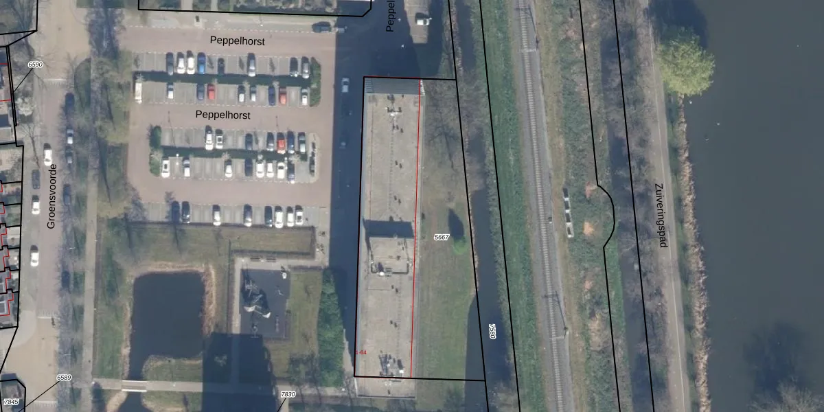 Het perceel waarop Peppelhorst 61 staat heeft een oppervlakte van 1965 m². Dit is een zeer groot perceel. De perceeloppervlakte wordt geregistreerd door het Kadaster. Gedetailleerde informatie over de maten van dit perceel kunt u vinden in het rapport Kadastrale kaart met maatvoering van Peppelhorst 61.