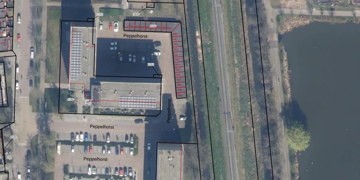 Peppelhorst 66-B is gelegen op kadastraal perceel WDV01B6210. Deze kadastrale aanduiding is uniek en wordt gebruikt door het Kadaster om eigendomsrechten en andere zakelijke rechten vast te leggen. Het perceel maakt onderdeel uit van de kadastrale gemeente Waddinxveen.