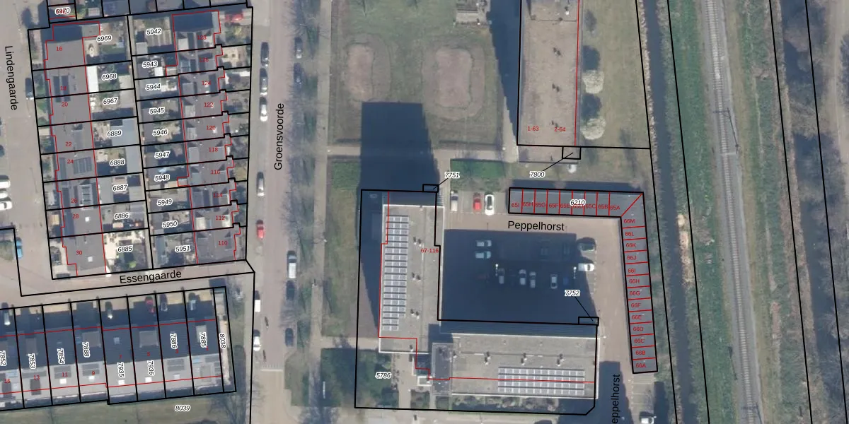 Het perceel waarop Peppelhorst 76 staat heeft een oppervlakte van 1735 m². Dit is een zeer groot perceel. De perceeloppervlakte wordt geregistreerd door het Kadaster. Gedetailleerde informatie over de maten van dit perceel kunt u vinden in het rapport Kadastrale kaart met maatvoering van Peppelhorst 76.