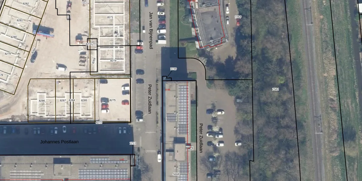 Het adres ligt op het perceel WDV01-B-5668, dat zich in de kadastrale gemeente Waddinxveen bevindt. Het perceel is 1360 m² groot. Dat is kleiner dan de gemiddelde perceeloppervlakte in Waddinxveen, dat op 2158,97 m² ligt. Het grootste perceel in de kadastrale gemeente is 49,8 ha. Het kleinste perceel heeft een oppervlakte van 0 m². Op het perceel liggen in totaal 48 adressen. De laatste wijziging in het de Basisregistratie Kadaster (BRK) was op 28-10-2009.
