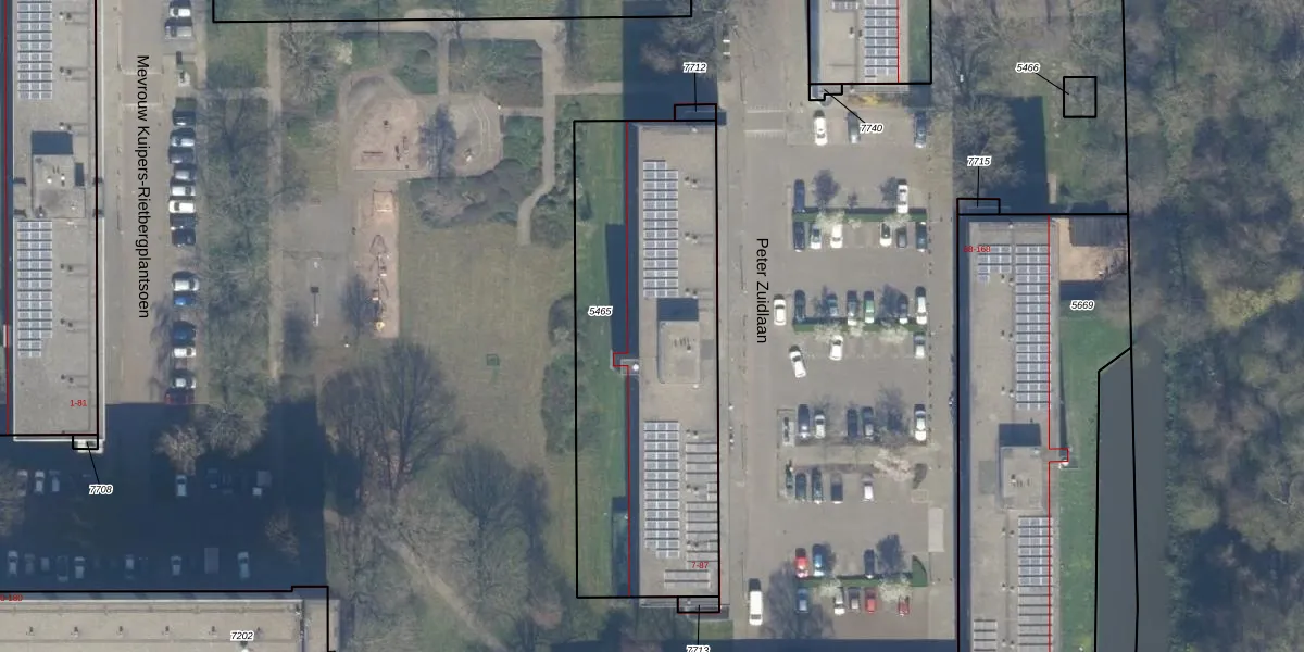 Het perceel waarop Peter Zuidlaan 63 staat heeft een oppervlakte van 1582 m². Dit is een zeer groot perceel. De perceeloppervlakte wordt geregistreerd door het Kadaster. Gedetailleerde informatie over de maten van dit perceel kunt u vinden in het rapport Kadastrale kaart met maatvoering van Peter Zuidlaan 63.