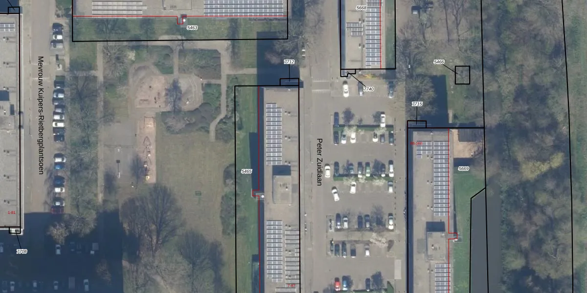 Peter Zuidlaan 7-B is gelegen op kadastraal perceel WDV01B5465. Deze kadastrale aanduiding is uniek en wordt gebruikt door het Kadaster om eigendomsrechten en andere zakelijke rechten vast te leggen. Het perceel maakt onderdeel uit van de kadastrale gemeente Waddinxveen.