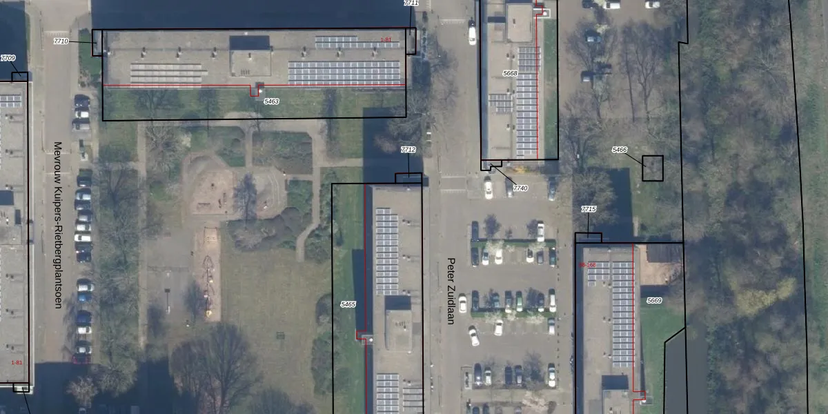 Peter Zuidlaan 7-F is gelegen op kadastraal perceel WDV01B5465. Deze kadastrale aanduiding is uniek en wordt gebruikt door het Kadaster om eigendomsrechten en andere zakelijke rechten vast te leggen. Het perceel maakt onderdeel uit van de kadastrale gemeente Waddinxveen.