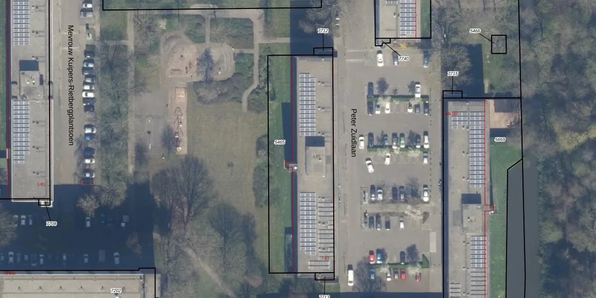Peter Zuidlaan 79 is gelegen op kadastraal perceel WDV01B5465. Deze kadastrale aanduiding is uniek en wordt gebruikt door het Kadaster om eigendomsrechten en andere zakelijke rechten vast te leggen. Het perceel maakt onderdeel uit van de kadastrale gemeente Waddinxveen.