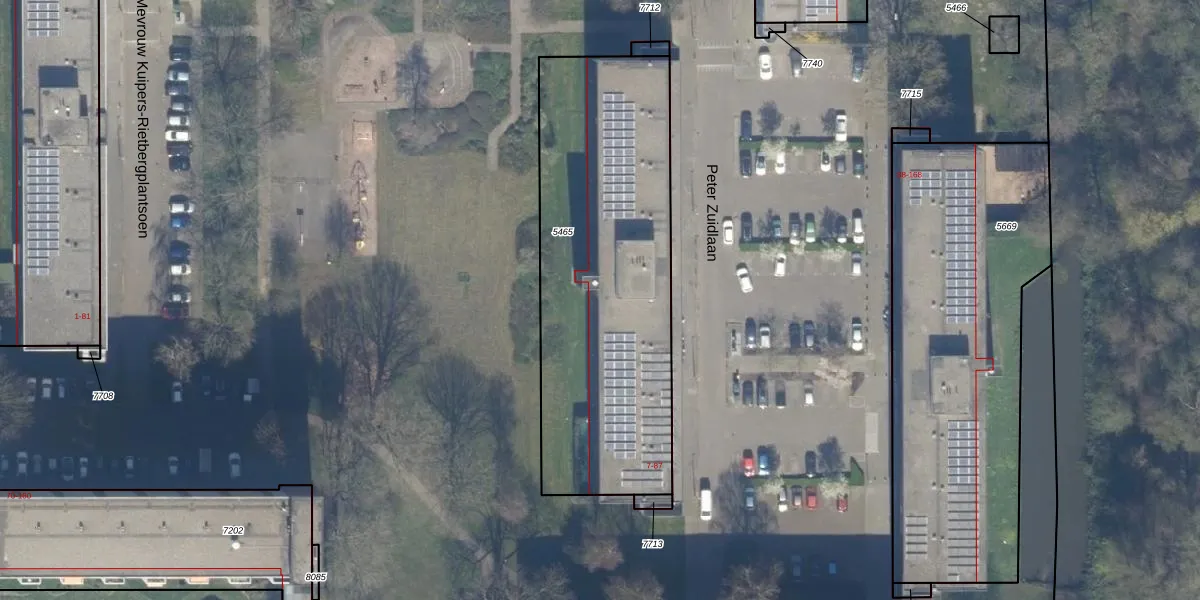 Het perceel waarop Peter Zuidlaan 81 staat heeft een oppervlakte van 1582 m². Dit is een zeer groot perceel. De perceeloppervlakte wordt geregistreerd door het Kadaster. Gedetailleerde informatie over de maten van dit perceel kunt u vinden in het rapport Kadastrale kaart met maatvoering van Peter Zuidlaan 81.