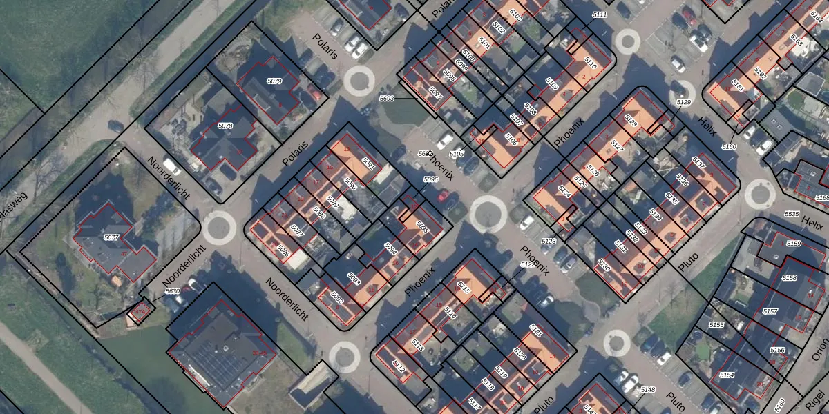 Gebruik de zoekbalk of klik op een perceel voor informatie over de adressen binnen dit perceel.