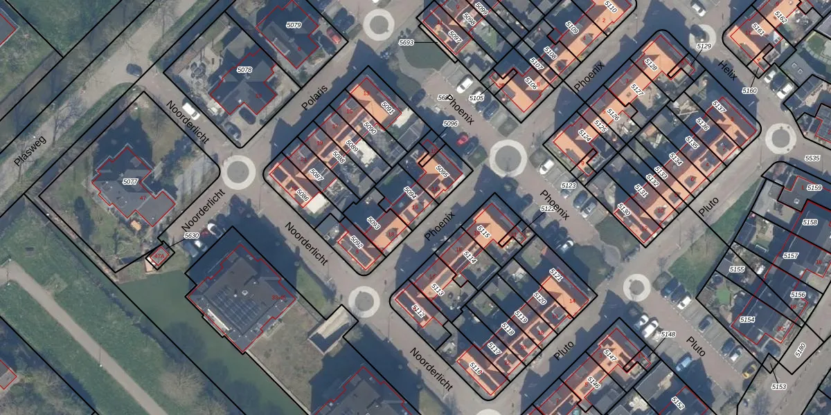Gebruik de zoekbalk of klik op een perceel voor informatie over de adressen binnen dit perceel.