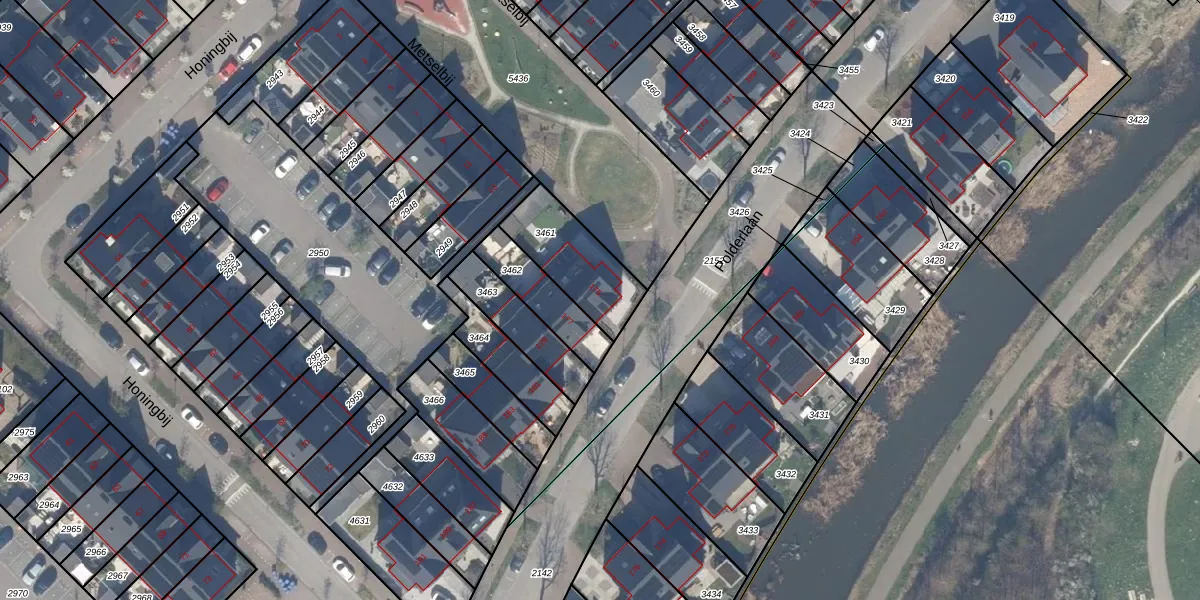Gebruik de zoekbalk of klik op een perceel voor informatie over de adressen binnen dit perceel.