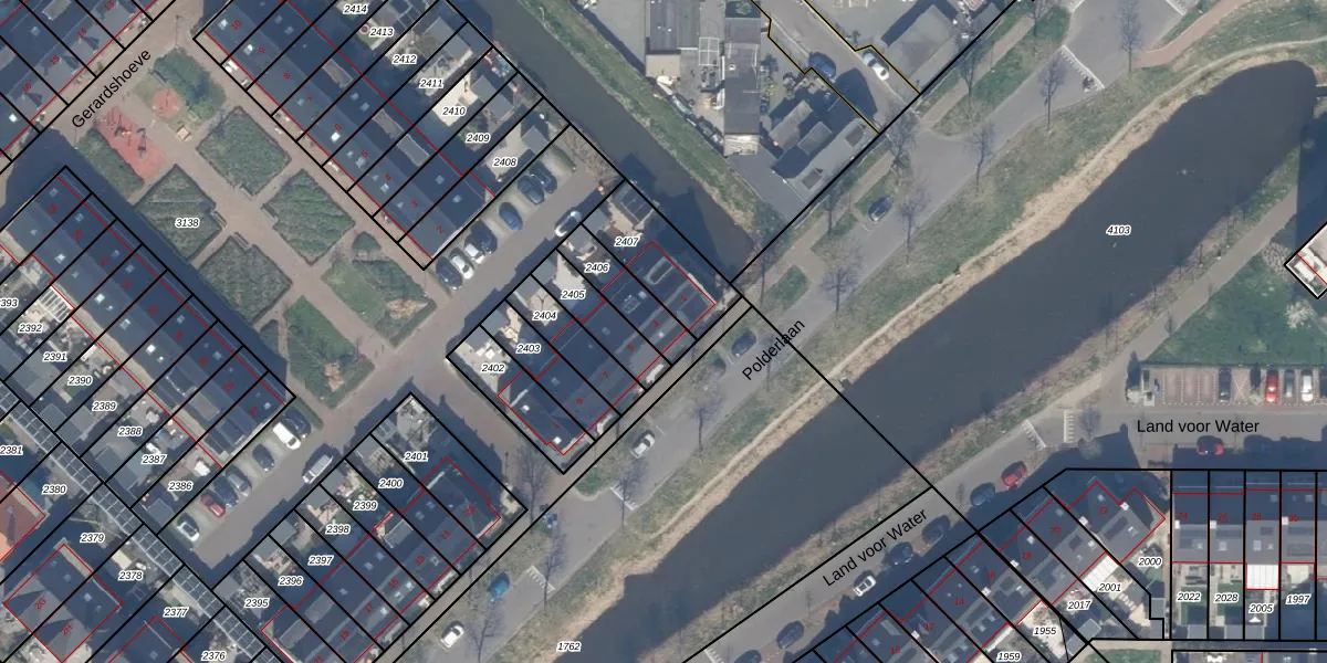 Polderlaan 3 is gelegen op kadastraal perceel WDV01E2406. Deze kadastrale aanduiding is uniek en wordt gebruikt door het Kadaster om eigendomsrechten en andere zakelijke rechten vast te leggen. Het perceel maakt onderdeel uit van de kadastrale gemeente Waddinxveen.