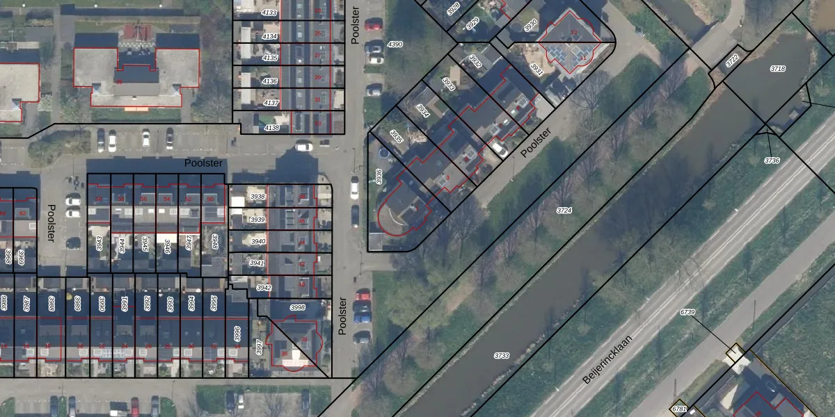 Poolster 1 is gelegen op kadastraal perceel WDV01C3936. Deze kadastrale aanduiding is uniek en wordt gebruikt door het Kadaster om eigendomsrechten en andere zakelijke rechten vast te leggen. Het perceel maakt onderdeel uit van de kadastrale gemeente Waddinxveen.