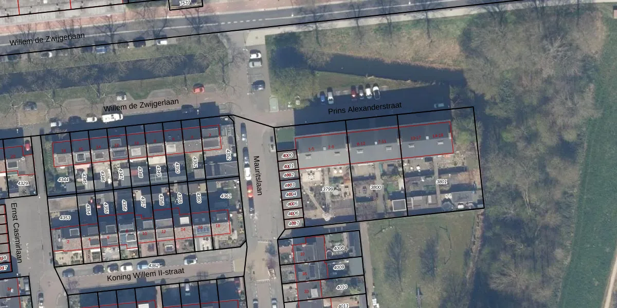 Het perceel waarop Prins Alexanderstraat 2 staat heeft een oppervlakte van 608 m². Dit is een groot perceel. De perceeloppervlakte wordt geregistreerd door het Kadaster. Gedetailleerde informatie over de maten van dit perceel kunt u vinden in het rapport Kadastrale kaart met maatvoering van Prins Alexanderstraat 2.