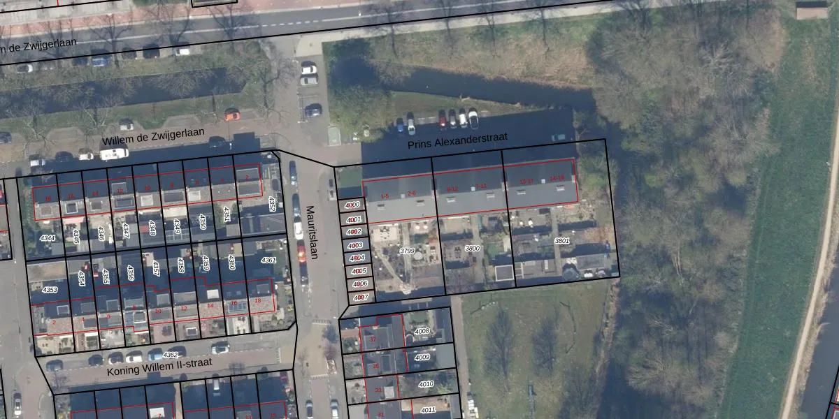 Het perceel waarop Prins Alexanderstraat 4 staat heeft een oppervlakte van 608 m². Dit is een groot perceel. De perceeloppervlakte wordt geregistreerd door het Kadaster. Gedetailleerde informatie over de maten van dit perceel kunt u vinden in het rapport Kadastrale kaart met maatvoering van Prins Alexanderstraat 4.