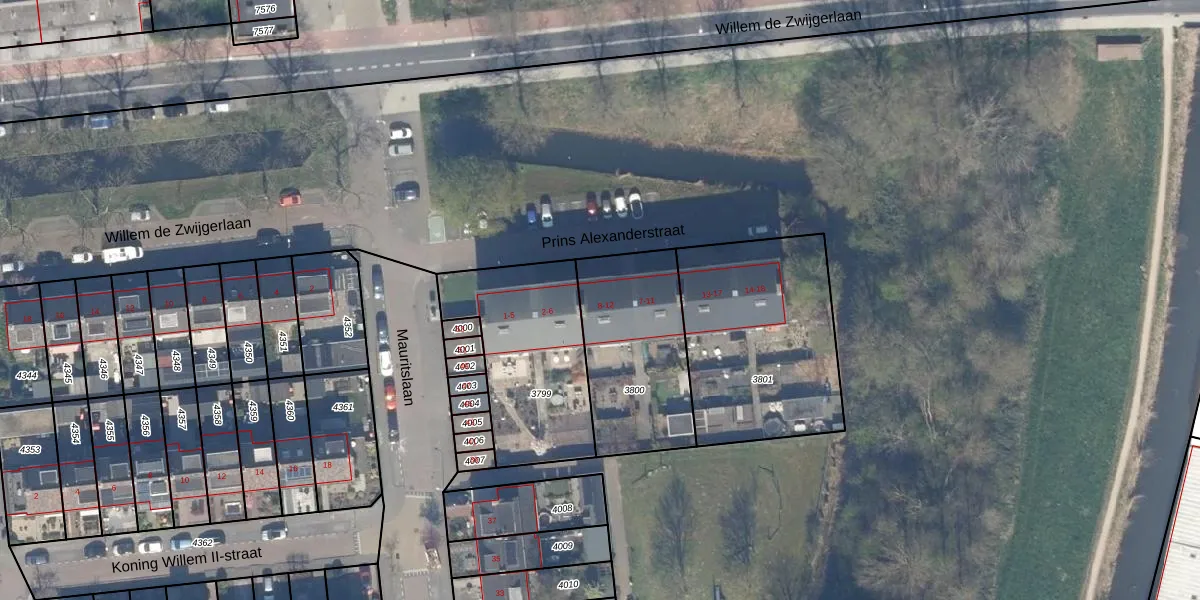 Het perceel waarop Prins Alexanderstraat 7 staat heeft een oppervlakte van 553 m². Dit is een groot perceel. De perceeloppervlakte wordt geregistreerd door het Kadaster. Gedetailleerde informatie over de maten van dit perceel kunt u vinden in het rapport Kadastrale kaart met maatvoering van Prins Alexanderstraat 7.