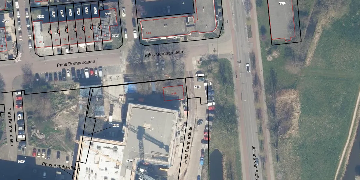 Prins Bernhardlaan 2 is gelegen op kadastraal perceel WDV01B7597. Deze kadastrale aanduiding is uniek en wordt gebruikt door het Kadaster om eigendomsrechten en andere zakelijke rechten vast te leggen. Het perceel maakt onderdeel uit van de kadastrale gemeente Waddinxveen.