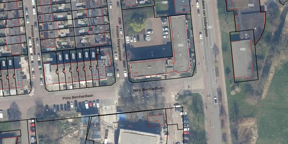 Prins Bernhardlaan 3 is gelegen op kadastraal perceel WDV01B7379. Deze kadastrale aanduiding is uniek en wordt gebruikt door het Kadaster om eigendomsrechten en andere zakelijke rechten vast te leggen. Het perceel maakt onderdeel uit van de kadastrale gemeente Waddinxveen.