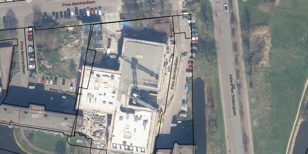 Prins Bernhardlaan 302 is gelegen op kadastraal perceel WDV01B7597. Deze kadastrale aanduiding is uniek en wordt gebruikt door het Kadaster om eigendomsrechten en andere zakelijke rechten vast te leggen. Het perceel maakt onderdeel uit van de kadastrale gemeente Waddinxveen.