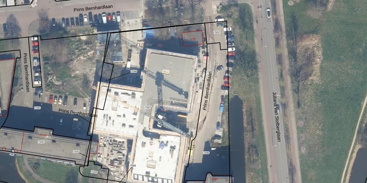 Prins Bernhardlaan 304 is gelegen op kadastraal perceel WDV01B7597. Deze kadastrale aanduiding is uniek en wordt gebruikt door het Kadaster om eigendomsrechten en andere zakelijke rechten vast te leggen. Het perceel maakt onderdeel uit van de kadastrale gemeente Waddinxveen.