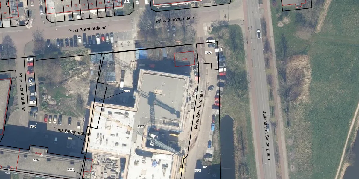 Prins Bernhardlaan 314 is gelegen op kadastraal perceel WDV01B7597. Deze kadastrale aanduiding is uniek en wordt gebruikt door het Kadaster om eigendomsrechten en andere zakelijke rechten vast te leggen. Het perceel maakt onderdeel uit van de kadastrale gemeente Waddinxveen.