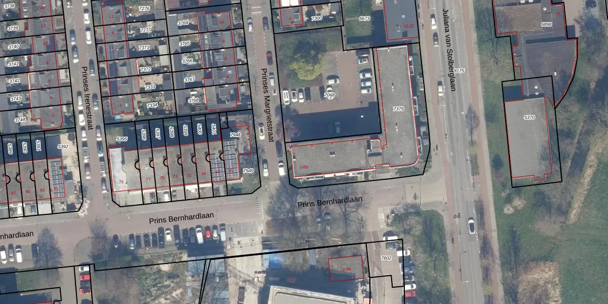 Prins Bernhardlaan 33 is gelegen op kadastraal perceel WDV01B7379. Deze kadastrale aanduiding is uniek en wordt gebruikt door het Kadaster om eigendomsrechten en andere zakelijke rechten vast te leggen. Het perceel maakt onderdeel uit van de kadastrale gemeente Waddinxveen.
