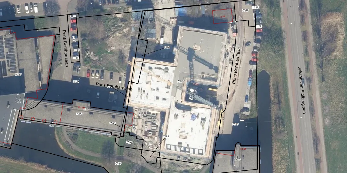 Prins Bernhardlaan 400 is gelegen op kadastraal perceel WDV01B7597. Deze kadastrale aanduiding is uniek en wordt gebruikt door het Kadaster om eigendomsrechten en andere zakelijke rechten vast te leggen. Het perceel maakt onderdeel uit van de kadastrale gemeente Waddinxveen.