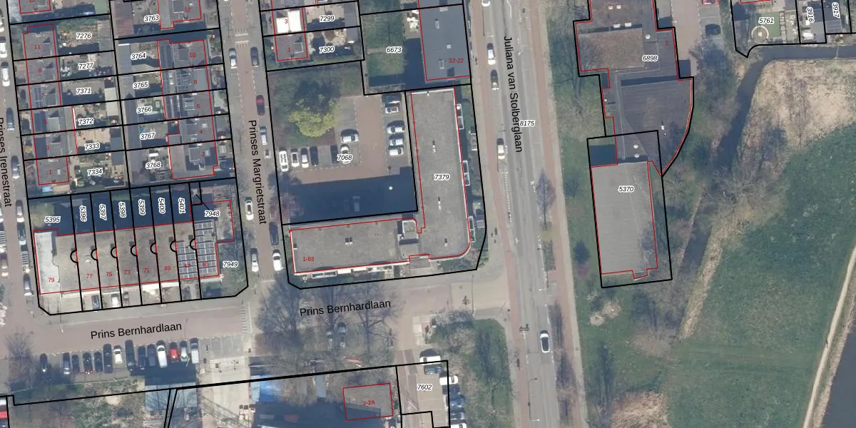 Prins Bernhardlaan 9 is gelegen op kadastraal perceel WDV01B7379. Deze kadastrale aanduiding is uniek en wordt gebruikt door het Kadaster om eigendomsrechten en andere zakelijke rechten vast te leggen. Het perceel maakt onderdeel uit van de kadastrale gemeente Waddinxveen.