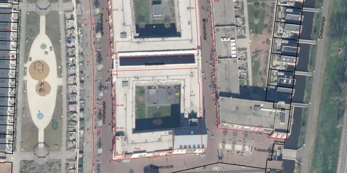 Het adres ligt op het perceel WDV01-D-3557, dat zich in de kadastrale gemeente Waddinxveen bevindt. De gemiddelde perceeloppervlakte in de kadastrale gemeente Waddinxveen is 2158,81 m². Dit perceel is met zijn 3,1 ha dus groter dan gemiddeld. De grootste perceeloppervlakte in de kadastrale gemeente is 49,8 ha. De kleinste oppervlakte bedraagt 0 m². Er zijn 316 adressen aanwezig op het perceel. In de Basisregistratie Kadaster (BRK) werden de grenzen van het perceel geregistreerd op 11-12-2025.