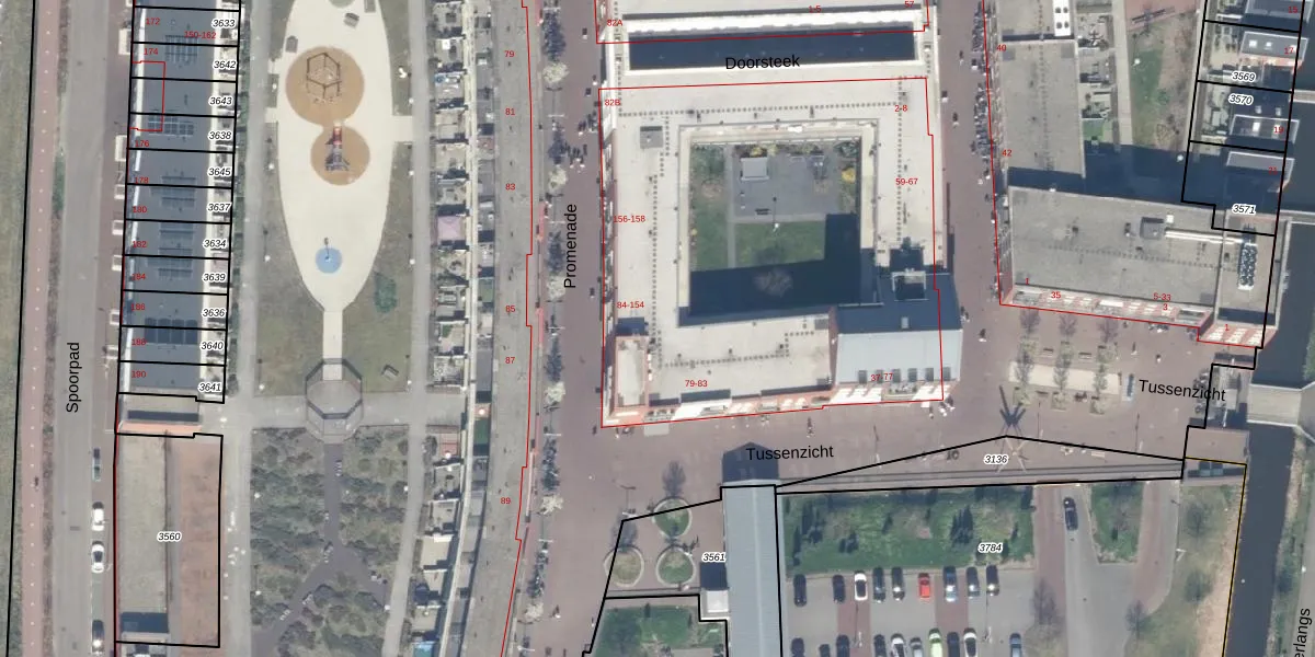 Het perceel waarop Promenade 116 staat heeft een oppervlakte van 3,1 ha. Dit is een zeer groot perceel. De perceeloppervlakte wordt geregistreerd door het Kadaster. Gedetailleerde informatie over de maten van dit perceel kunt u vinden in het rapport Kadastrale kaart met maatvoering van Promenade 116.