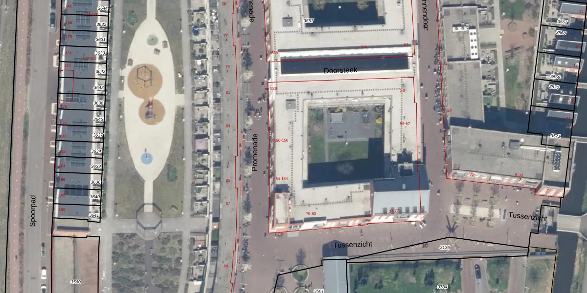 Het perceel waarop Promenade 120 staat heeft een oppervlakte van 3,1 ha. Dit is een zeer groot perceel. De perceeloppervlakte wordt geregistreerd door het Kadaster. Gedetailleerde informatie over de maten van dit perceel kunt u vinden in het rapport Kadastrale kaart met maatvoering van Promenade 120.
