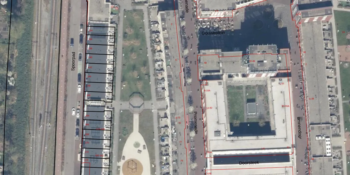 Het adres ligt op het perceel WDV01-D-3557, dat zich in de kadastrale gemeente Waddinxveen bevindt. De gemiddelde perceeloppervlakte in de kadastrale gemeente Waddinxveen is 2160,88 m². Dit perceel is met zijn 3,1 ha dus groter dan gemiddeld. Het kleinste perceel in de kadastrale gemeente is 0 m² groot. De grootste perceeloppervlakte is 49,8 ha. Er zijn 316 adressen aanwezig op het perceel. De huidige grenzen van het perceel zijn digitaal in de Basisregistratie Kadaster (BRK) geregistreerd op 11-12-2025.