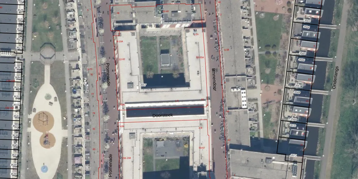 Het perceel waarop Promenade 24 staat heeft een oppervlakte van 3,1 ha. Dit is een zeer groot perceel. De perceeloppervlakte wordt geregistreerd door het Kadaster. Gedetailleerde informatie over de maten van dit perceel kunt u vinden in het rapport Kadastrale kaart met maatvoering van Promenade 24.