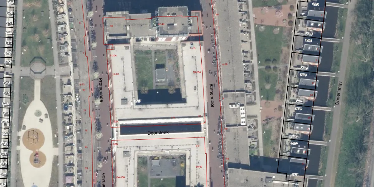 Het adres ligt op het perceel WDV01-D-3557, dat zich in de kadastrale gemeente Waddinxveen bevindt. De gemiddelde perceeloppervlakte in de kadastrale gemeente Waddinxveen is 2160,88 m². Dit perceel is met zijn 3,1 ha dus groter dan gemiddeld. Het grootste perceel in de kadastrale gemeente is 49,8 ha. Het kleinste perceel heeft een oppervlakte van 0 m². Op het perceel zijn 316 adressen aanwezig. De huidige grenzen van het perceel zijn digitaal in de Basisregistratie Kadaster (BRK) geregistreerd op 11-12-2025.