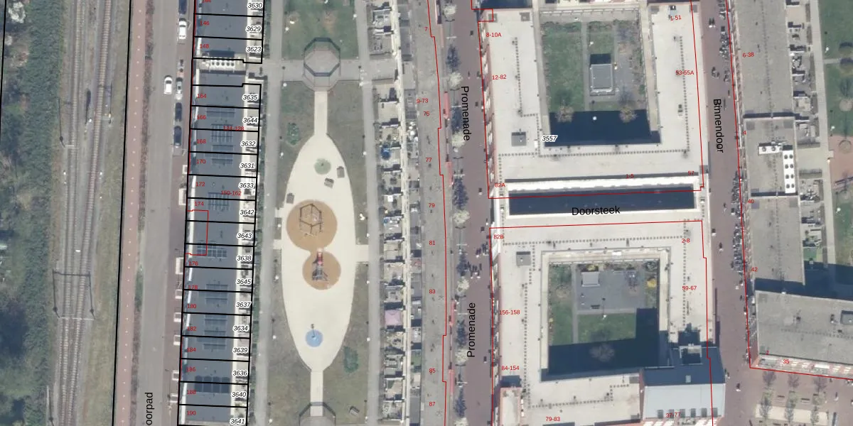 Het perceel waarop Promenade 37 staat heeft een oppervlakte van 3,1 ha. Dit is een zeer groot perceel. De perceeloppervlakte wordt geregistreerd door het Kadaster. Gedetailleerde informatie over de maten van dit perceel kunt u vinden in het rapport Kadastrale kaart met maatvoering van Promenade 37.
