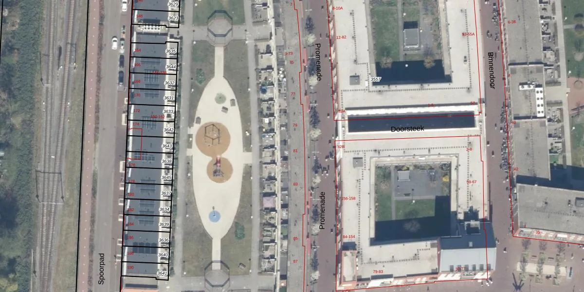 Het perceel waarop Promenade 39 staat heeft een oppervlakte van 3,1 ha. Dit is een zeer groot perceel. De perceeloppervlakte wordt geregistreerd door het Kadaster. Gedetailleerde informatie over de maten van dit perceel kunt u vinden in het rapport Kadastrale kaart met maatvoering van Promenade 39.