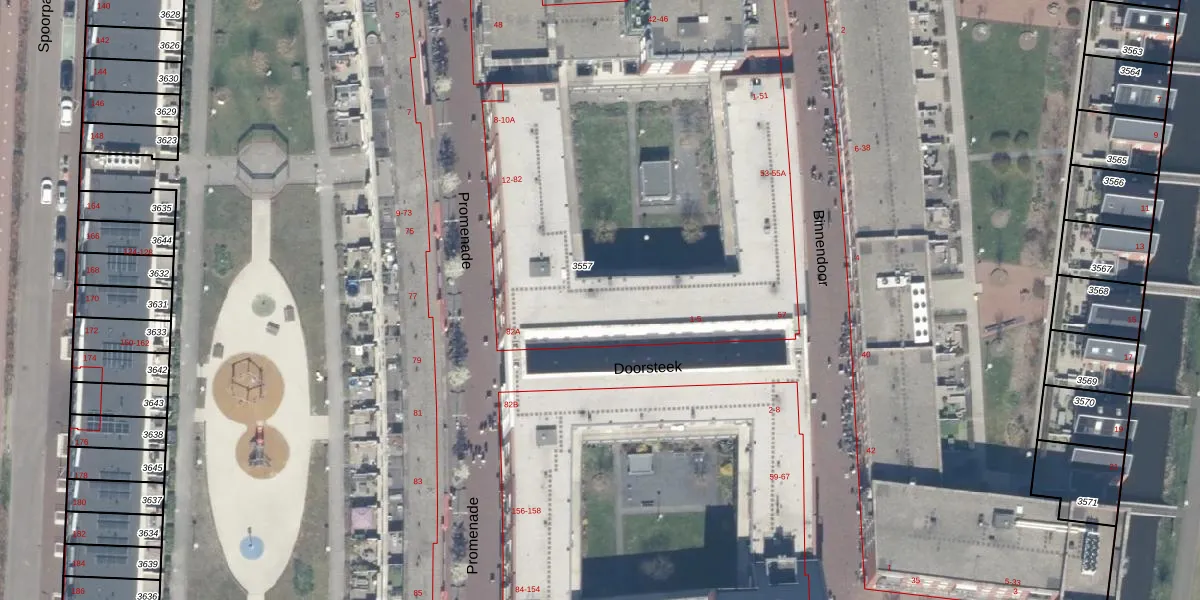 Het adres ligt op het perceel WDV01-D-3557, dat zich in de kadastrale gemeente Waddinxveen bevindt. De gemiddelde perceeloppervlakte in de kadastrale gemeente Waddinxveen is 2160,88 m². Dit perceel is met zijn 3,1 ha dus groter dan gemiddeld. Het grootste perceel in de kadastrale gemeente is 49,8 ha. Het kleinste perceel heeft een oppervlakte van 0 m². Op het perceel zijn 316 adressen aanwezig. De huidige grenzen van het perceel zijn digitaal in de Basisregistratie Kadaster (BRK) geregistreerd op 11-12-2025.