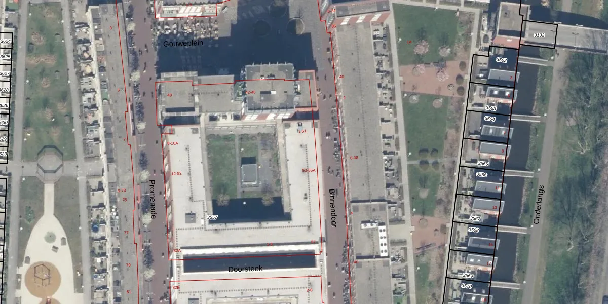 Het perceel waarop Promenade 80 staat heeft een oppervlakte van 3,1 ha. Dit is een zeer groot perceel. De perceeloppervlakte wordt geregistreerd door het Kadaster. Gedetailleerde informatie over de maten van dit perceel kunt u vinden in het rapport Kadastrale kaart met maatvoering van Promenade 80.