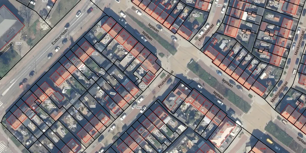 Het perceel waarop Prunusstraat 24-C staat heeft een oppervlakte van 96 m². Dit is een klein perceel. De perceeloppervlakte wordt geregistreerd door het Kadaster. Gedetailleerde informatie over de maten van dit perceel kunt u vinden in het rapport Kadastrale kaart met maatvoering van Prunusstraat 24-C.
