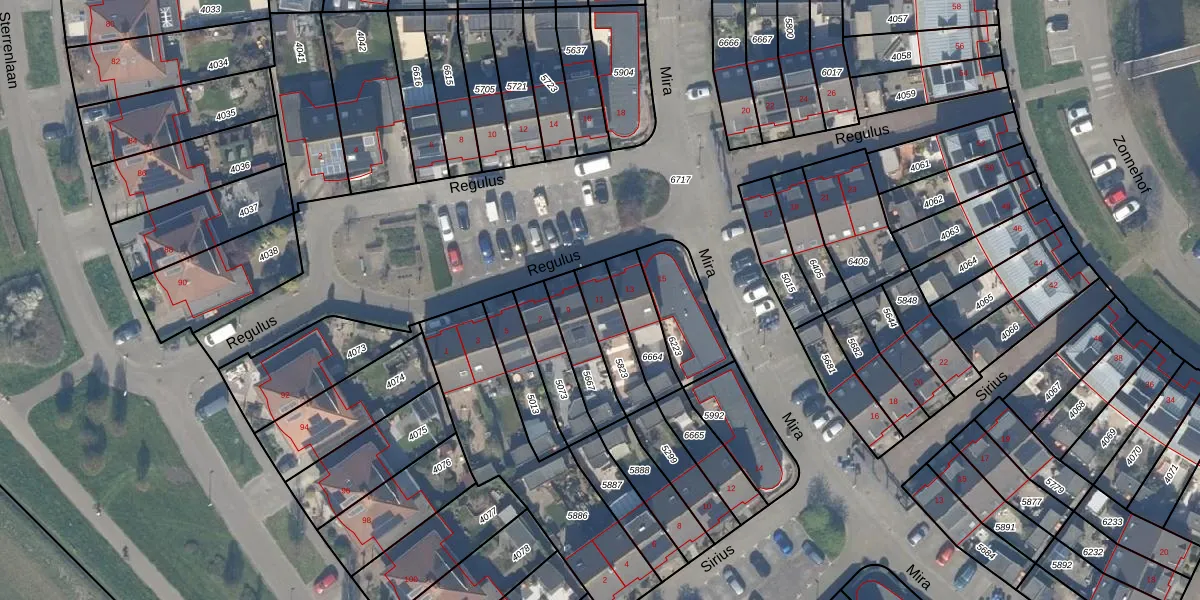 Gebruik de zoekbalk of klik op een perceel voor informatie over de adressen binnen dit perceel.