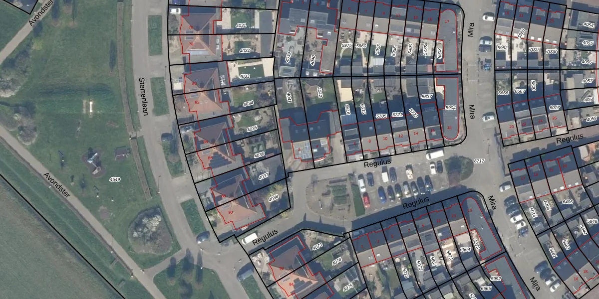 Het perceel waarop Regulus 2 staat heeft een oppervlakte van 302 m². Dit is een groot perceel. De perceeloppervlakte wordt geregistreerd door het Kadaster. Gedetailleerde informatie over de maten van dit perceel kunt u vinden in het rapport Kadastrale kaart met maatvoering van Regulus 2.